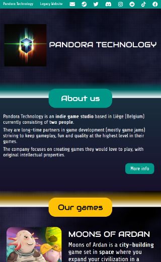 Both the Pandora Technology and Moons of Ardan websites designs have been improved.